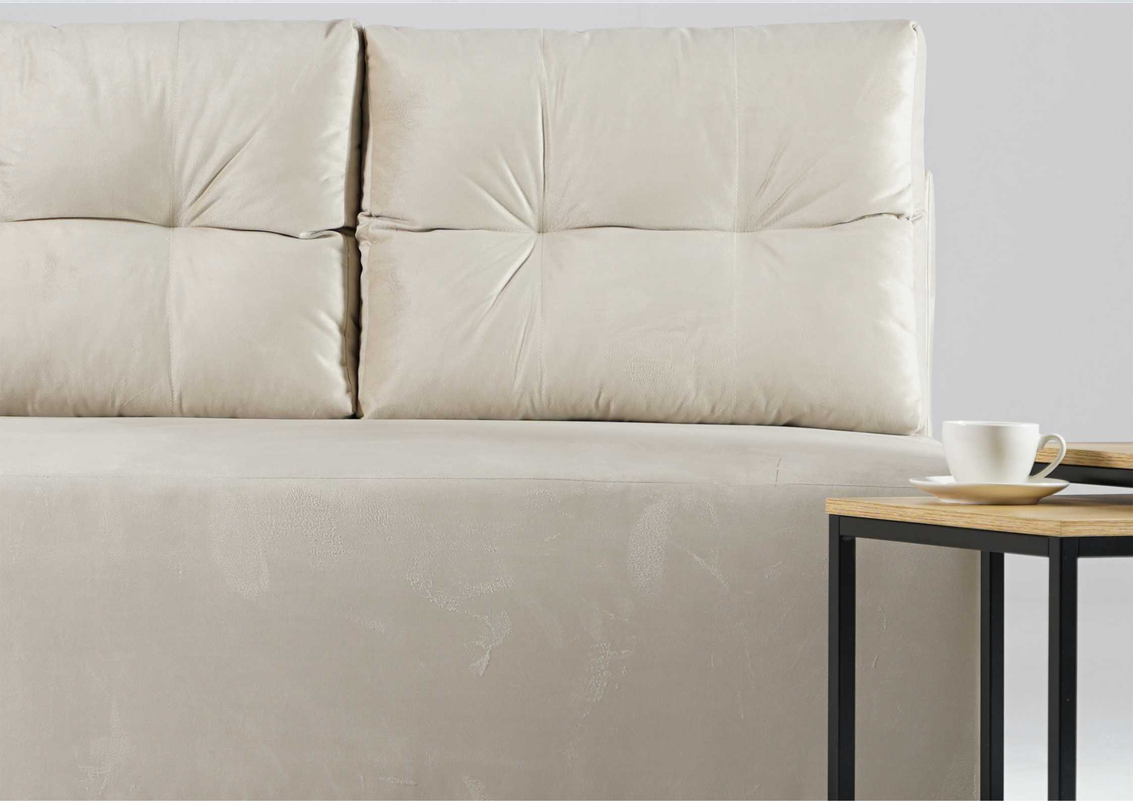 ✔ Mebel wolnostojący! ✔ Zyskujesz maksymalnie wypełnione oparcie! ✔ 4 poduszki! ✔ Zyskujesz powierzchnię spania 140x190cm! ✔ Schowek na pościel pod całą powierzchnią kanapy!Mała sofa z pikowanymi poduszkami Mono Lewa