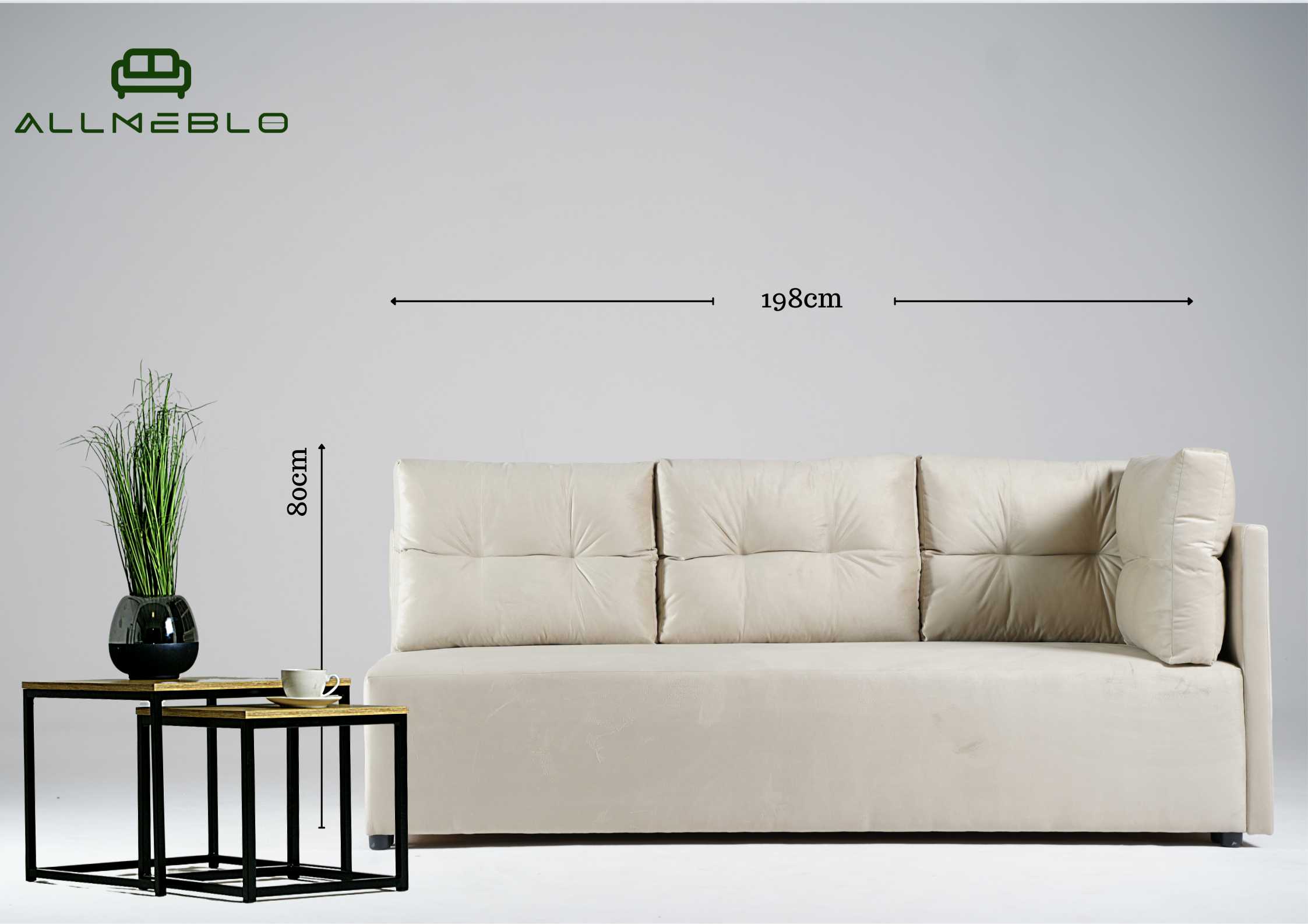 ✔ Mebel wolnostojący! ✔ Zyskujesz maksymalnie wypełnione oparcie! ✔ 4 poduszki! ✔ Zyskujesz powierzchnię spania 140x190cm! ✔ Schowek na pościel pod całą powierzchnią kanapy!Mała sofa z pikowanymi poduszkami Mono Prawa