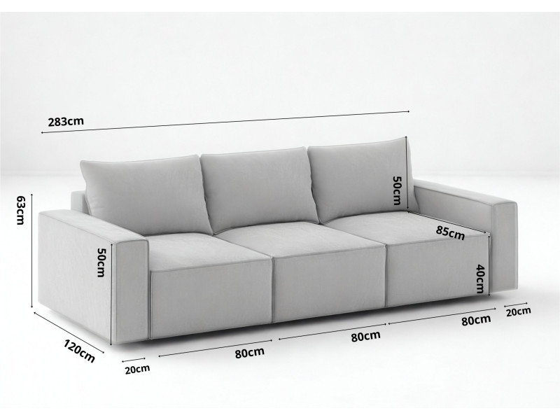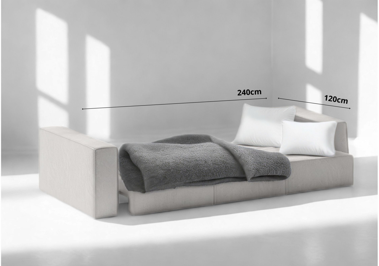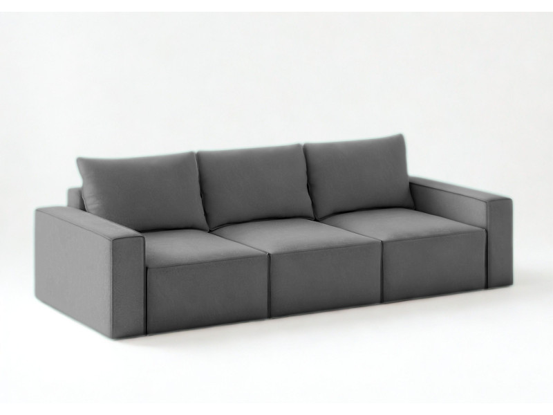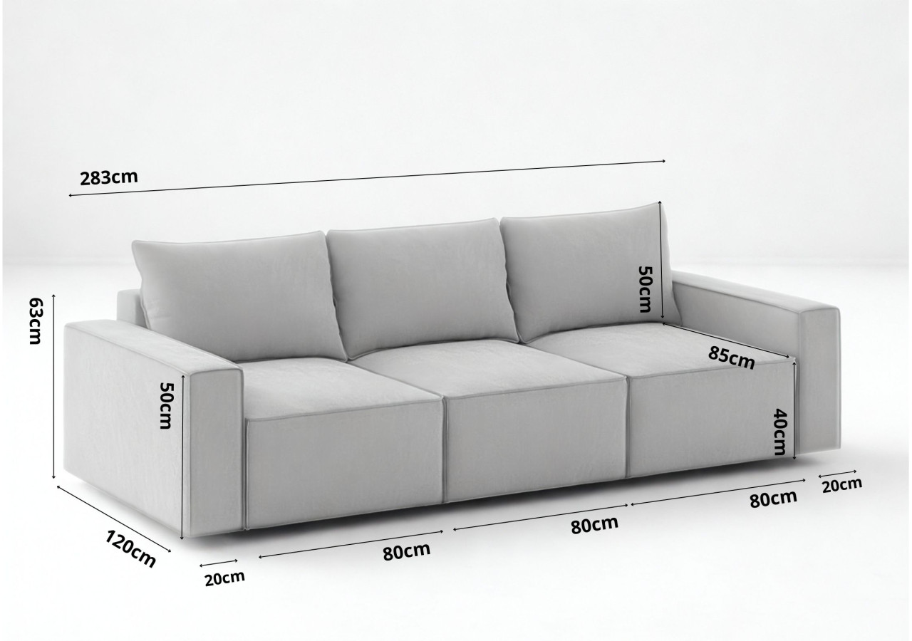 ✔ Mebel wolnostojący! ✔ Zyskujesz maksymalnie wypełnione oparcie i możliwość prania poszewek! ✔ 3 poduszki oparciowe! ✔ Zyskujesz powierzchnię spania 240x160cm! ✔ 3 schowki na pościel pod modułami rozkładanymi! Wymiary:Industrialna sofa modułowa z funkcją spania SENS