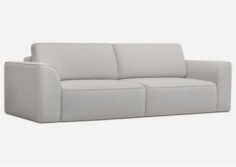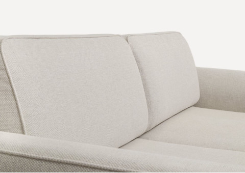 Sofa posiada 2 duże poduszki szyte na zamku. Mebel obijamy w całości tkaniną obiciową. Jest to mebel wolnostojący. Poduszki wypełniane granulatem piankowym lub silikonem tworzą stabilne oparcie. Wypełniamy je mocno ponieważ przez najbliższe tygodnie użytkowania objętość wkładu zmniejsza się.