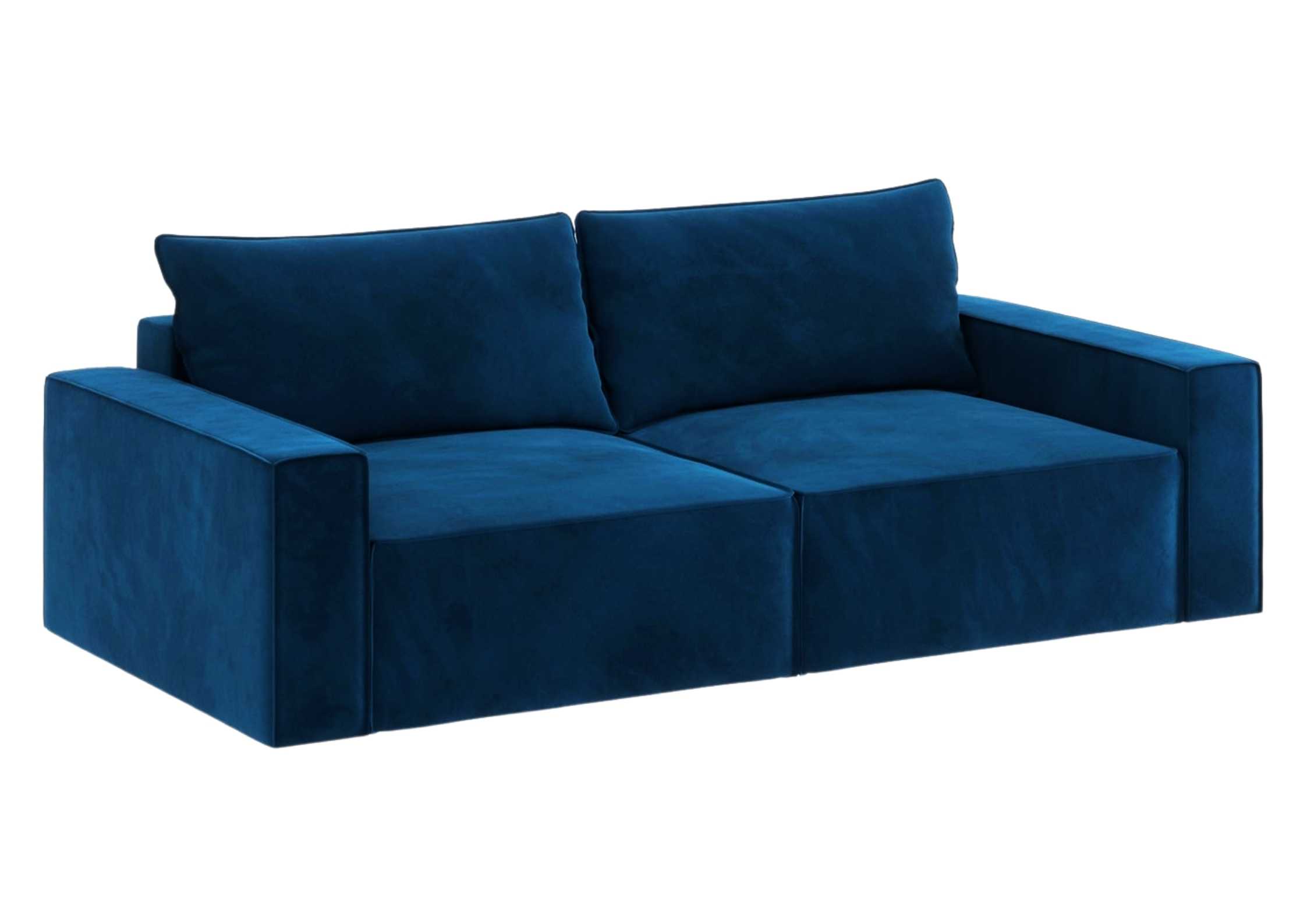 Modułowa sofa rozkładana SENS z pięknymi przeszyciami w stylu angielskim. Jest to szew zewnętrzny zastosowany na krawędziach mebla. Kanapa posiada 2 pojemniki na pościel. Po jednym pod każdym siedziskiem. Moduły możne rozłożyć niezależnie od innych. Po rozłożeniu obu modułów uzyskamy dużą powierzchnię spania o wymiarach 200x160cm. Głębokość siedziska to 100cm. W zestawie znajdą Państwo 2 duże poduszki oparciowe. Pokazujemy na aranżacjach również zdjęcia w jaki sposób można zaaranżować sofę z większą ilością poduszek ozdobnych.