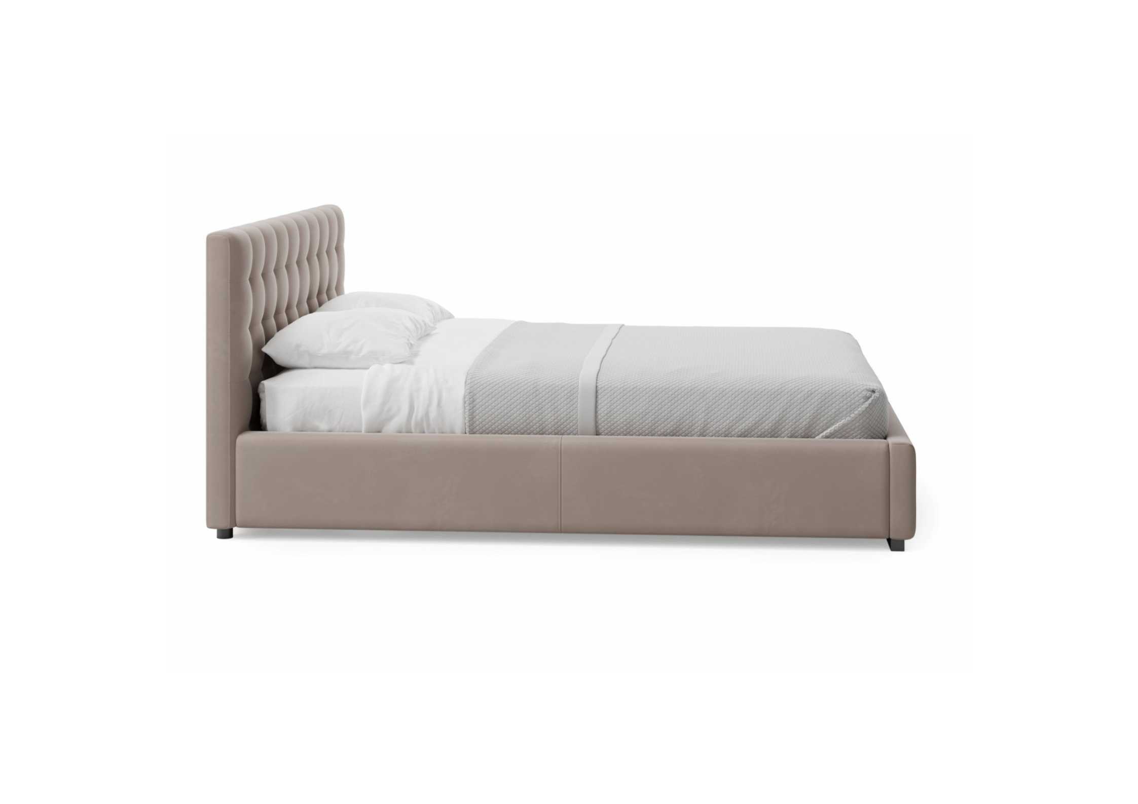 Łóżko tapicerowane na wymiar materaca 180x200cm. Łóżko posiada niskie nogi, które służą cyrkulacji powietrza pod meblem. Pięknie pikowany zagłówek.