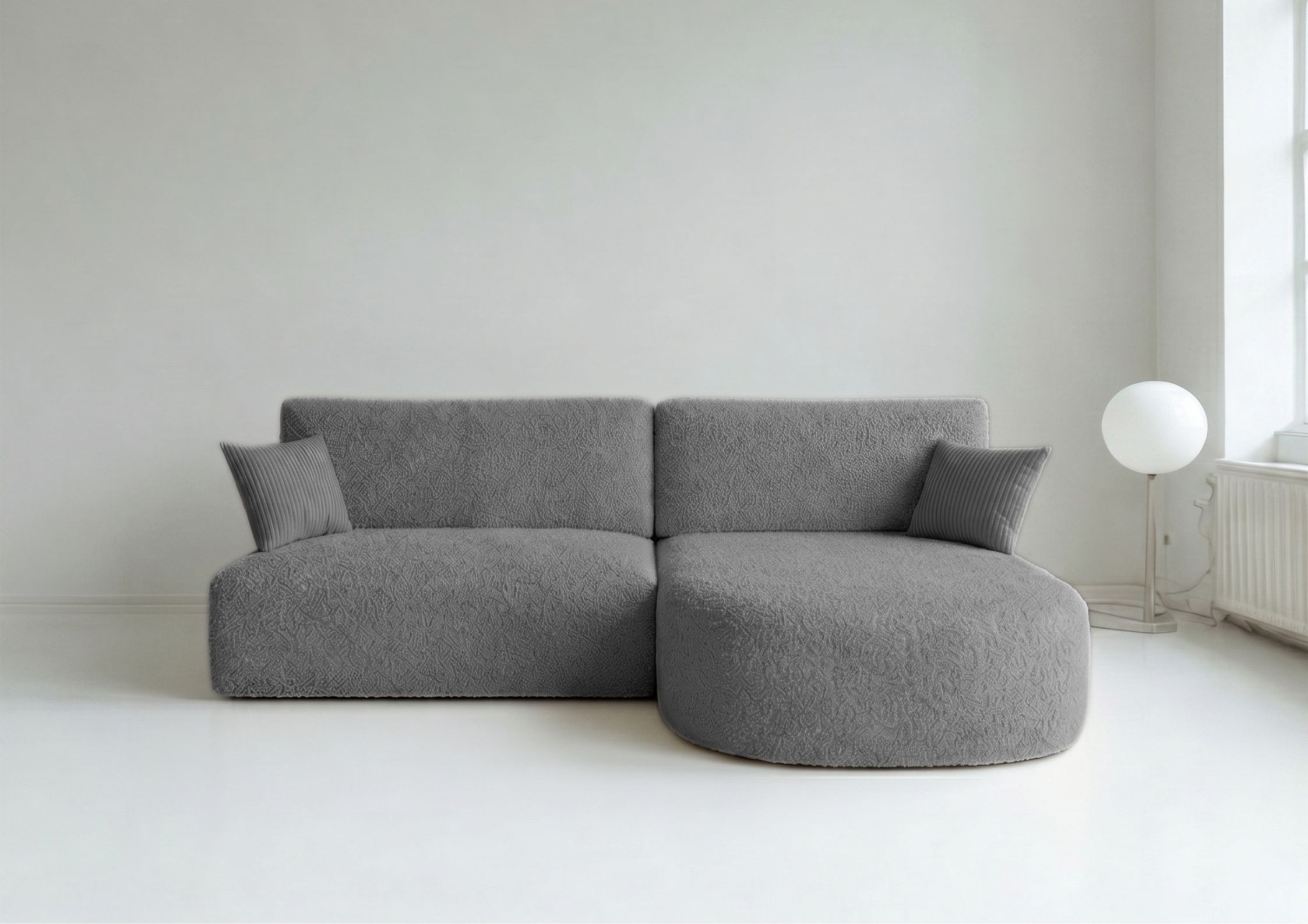 - Mebel wykonany jest w tkaninie bouclé CENTAUR w grafitowym odcieniu.