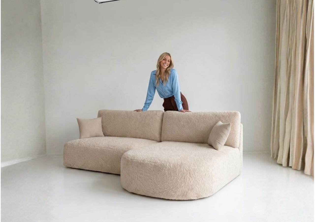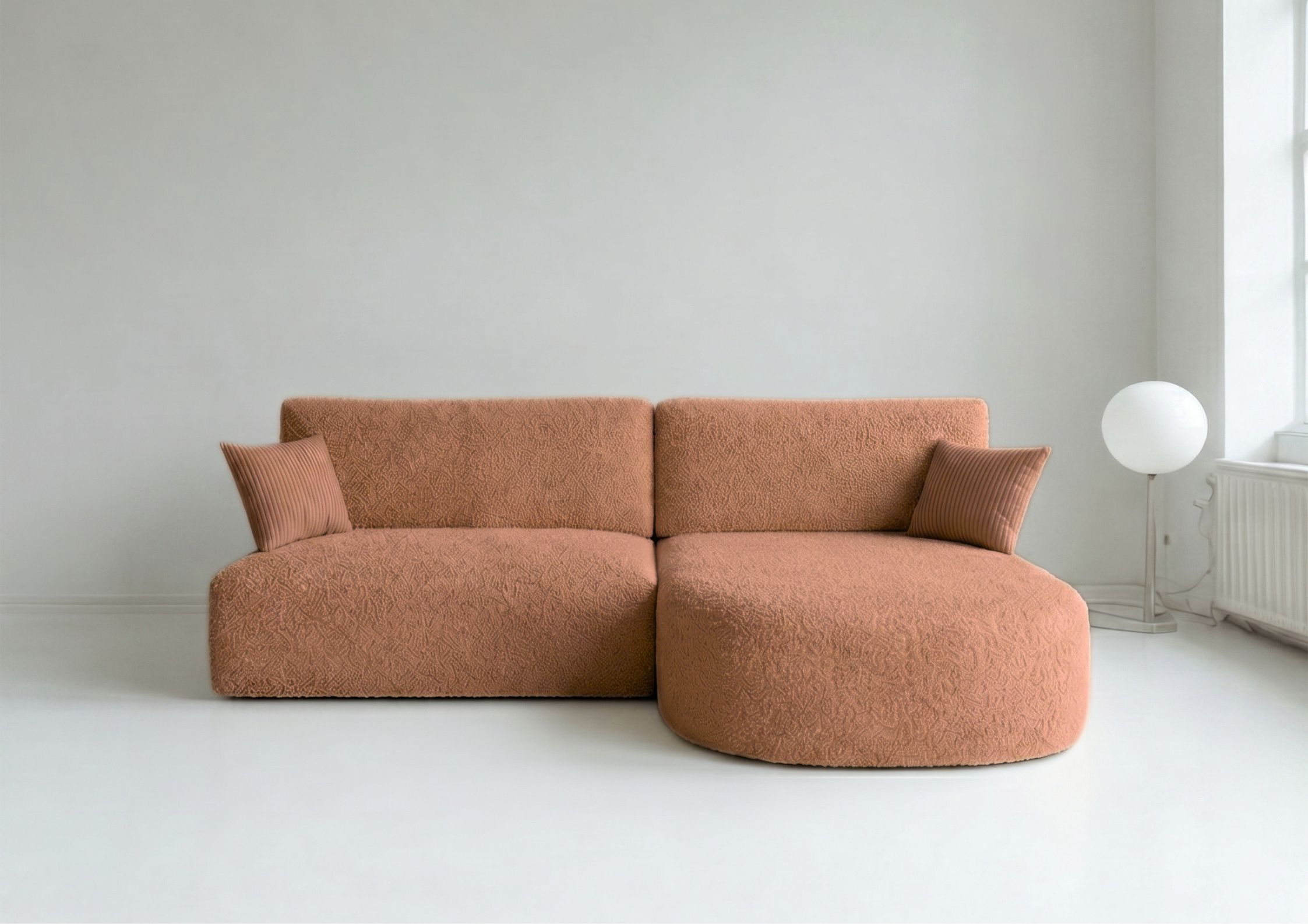 - Mebel wykonany jest w tkaninie bouclé CENTAUR w miedzianym odcieniu.