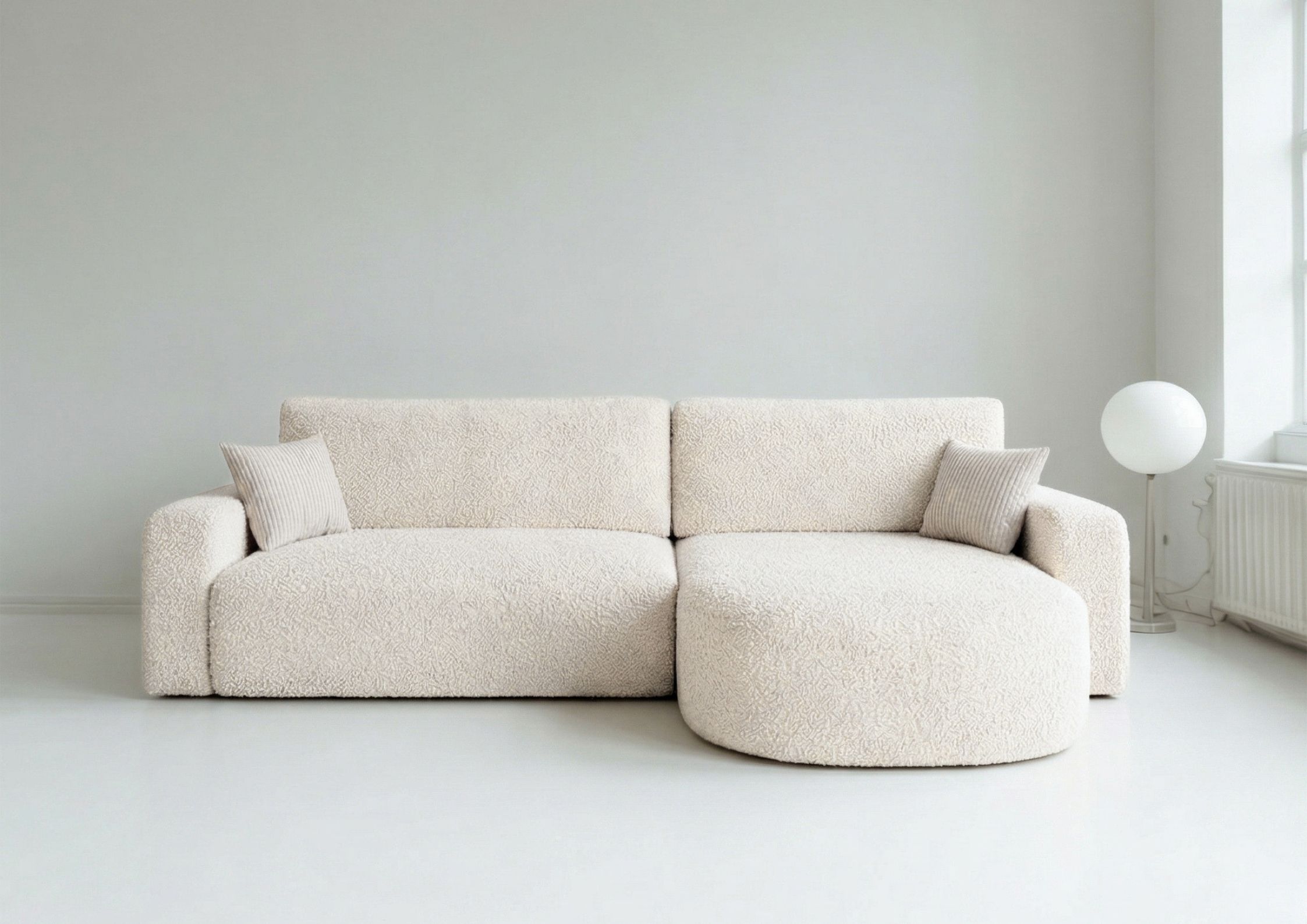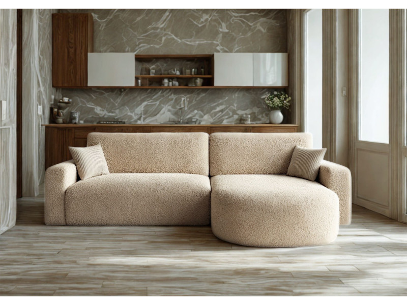 - Nowoczesna struktura bouclé dobrze pasuje do aktualnych aranżacji wnętrz.