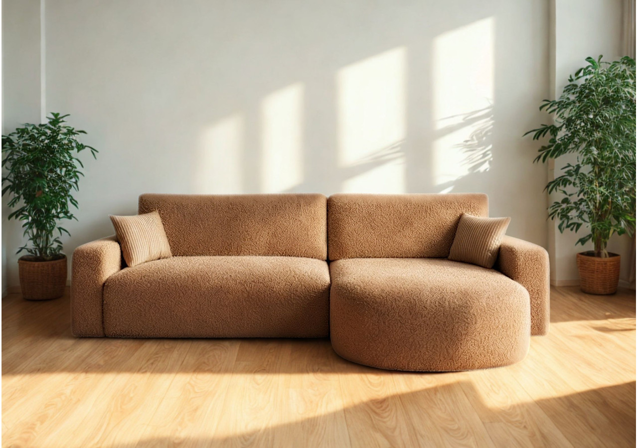 - Nowoczesna struktura bouclé dobrze pasuje do aktualnych aranżacji wnętrz.