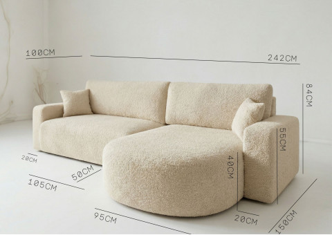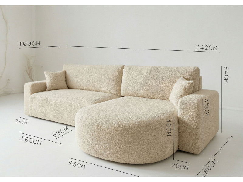 - Narożnik wykonany jest w tkaninie bouclé CENTAUR w grafitowym kolorze.