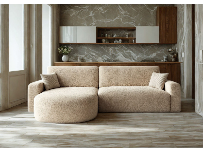 - Nowoczesna struktura bouclé dobrze pasuje do aktualnych aranżacji wnętrz.