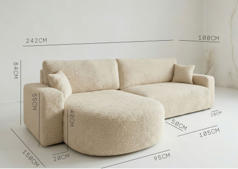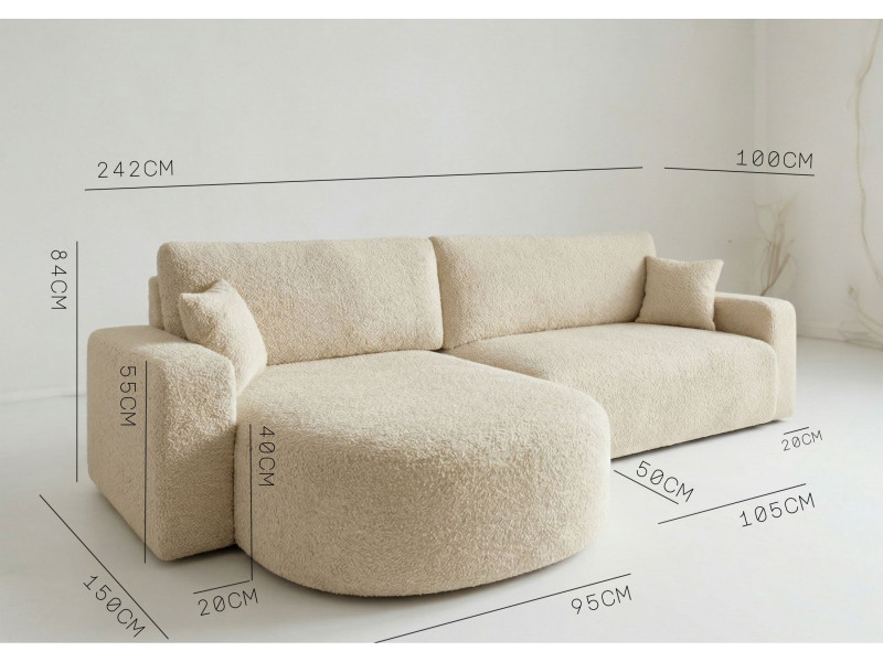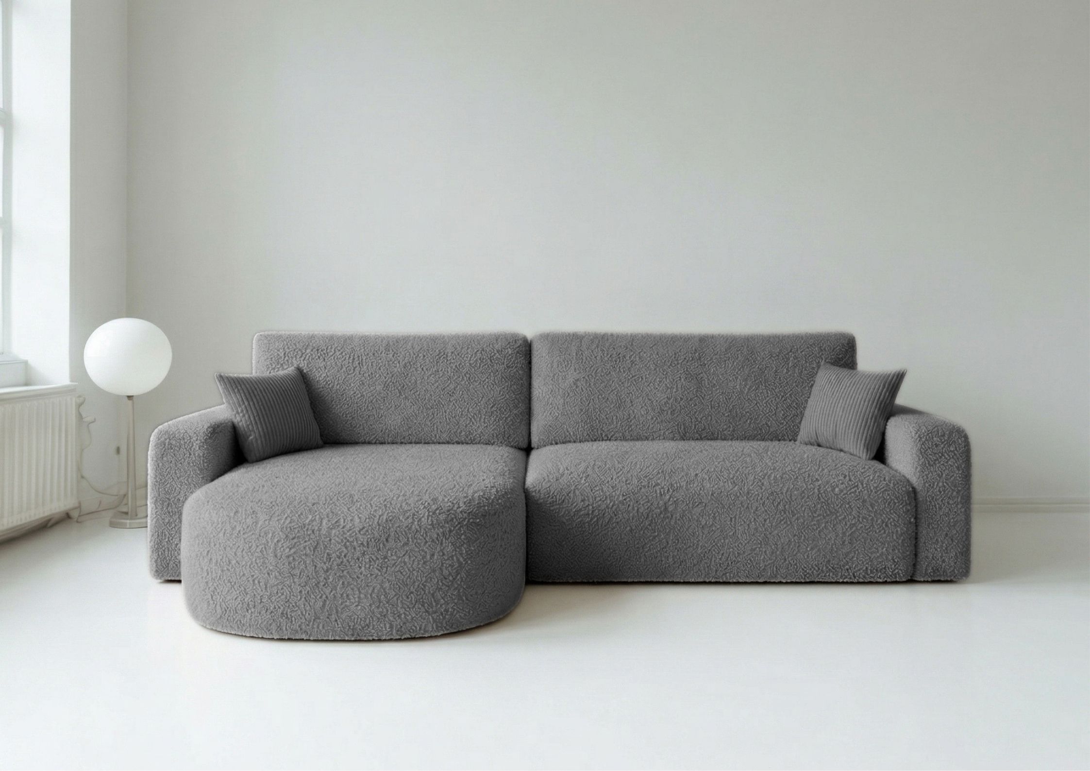 - Narożnik wykonany jest w tkaninie bouclé CENTAUR w grafitowym kolorze.