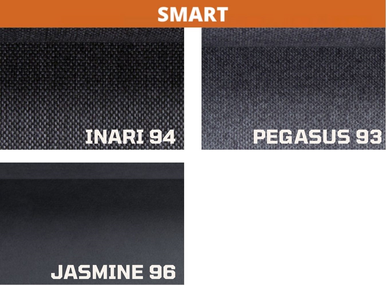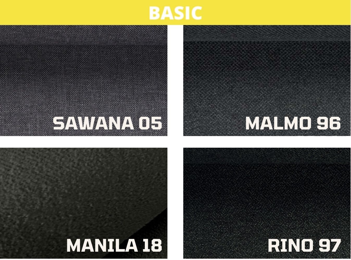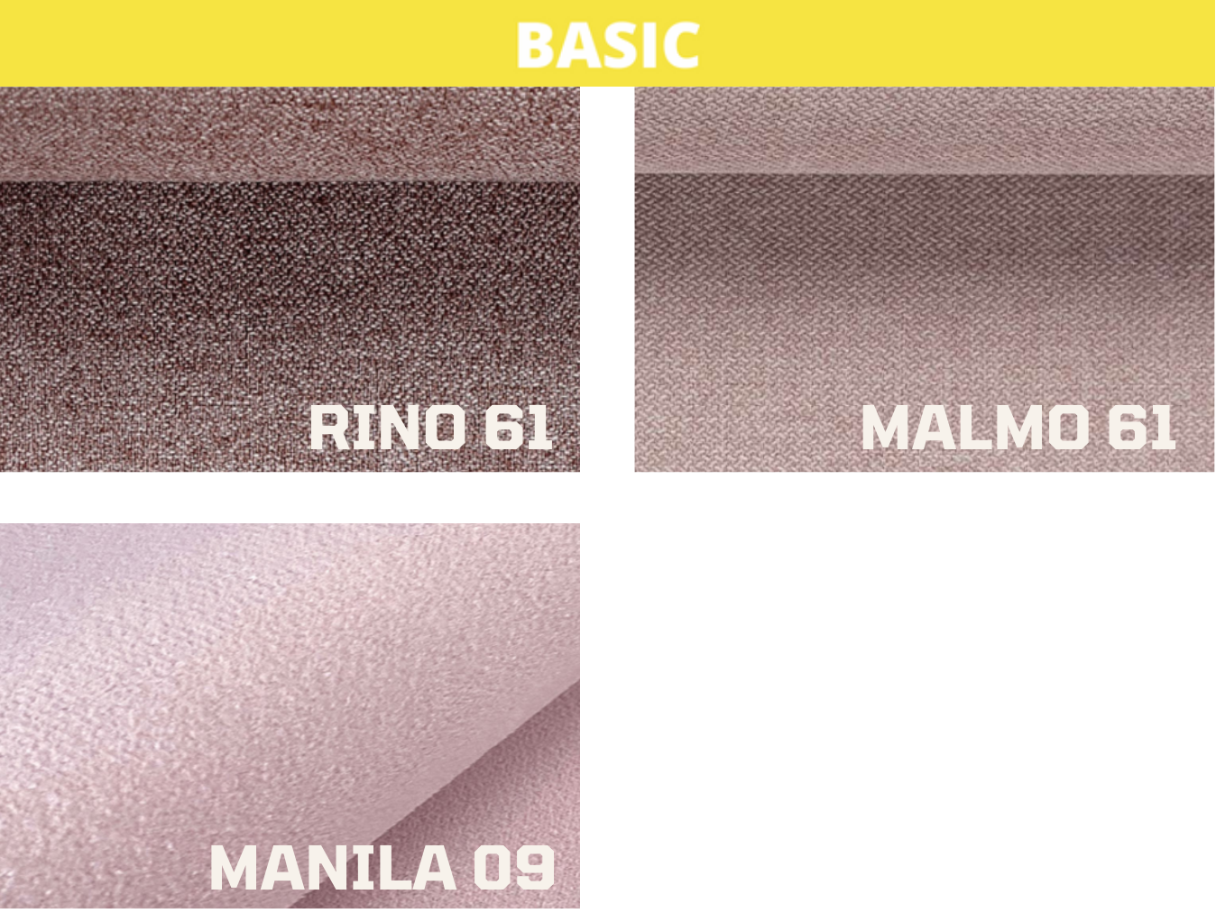 wykonywany w standardzie z łatwoczyszczących tkanin. Mebel na zdjęciach przedstawiamy w bardzo miłym w dotyku materiale Manila, który dodaje mu szyku i elegancji w stylu Glamour. W standardzie masz jeszcze do wyboru materiał Sawana, który sprawi, że sofa z funkcją spania nabierze bardziej skandynawskiego charakteru. Materiał Malmo, który nada kanapie niepowtarzalny trójwymiarowy wygląd oraz impregnowany materiał Rino, dzięki któremu nawet wylane wino nie będzie problemem.