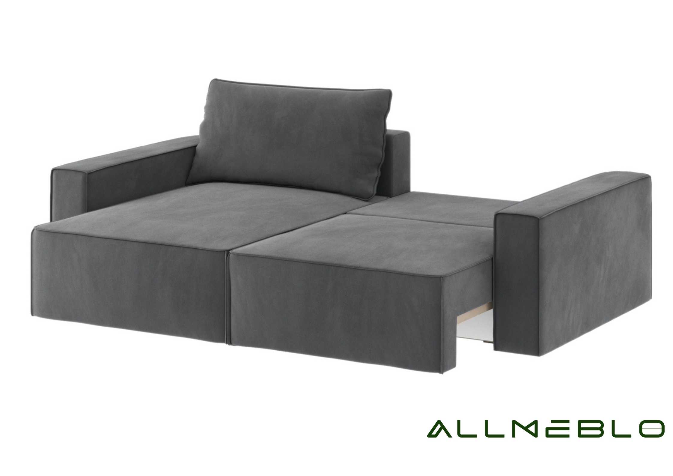 Narożnik składa się z dwóch modułów, jednego rozkładanego, dzięki czemu powstaje funkcja spania oraz drugiego narożnikowego. Głębokie siedziska - 100cm starczają za funkcję wypoczynkową oraz bez rozkładania powierzchnię spania dla jednej osoby. Po rozłożeniu mamy pełnowymiarowe 140x200cm co jest jedną z największych powierzchni spania w przypadku narożników.