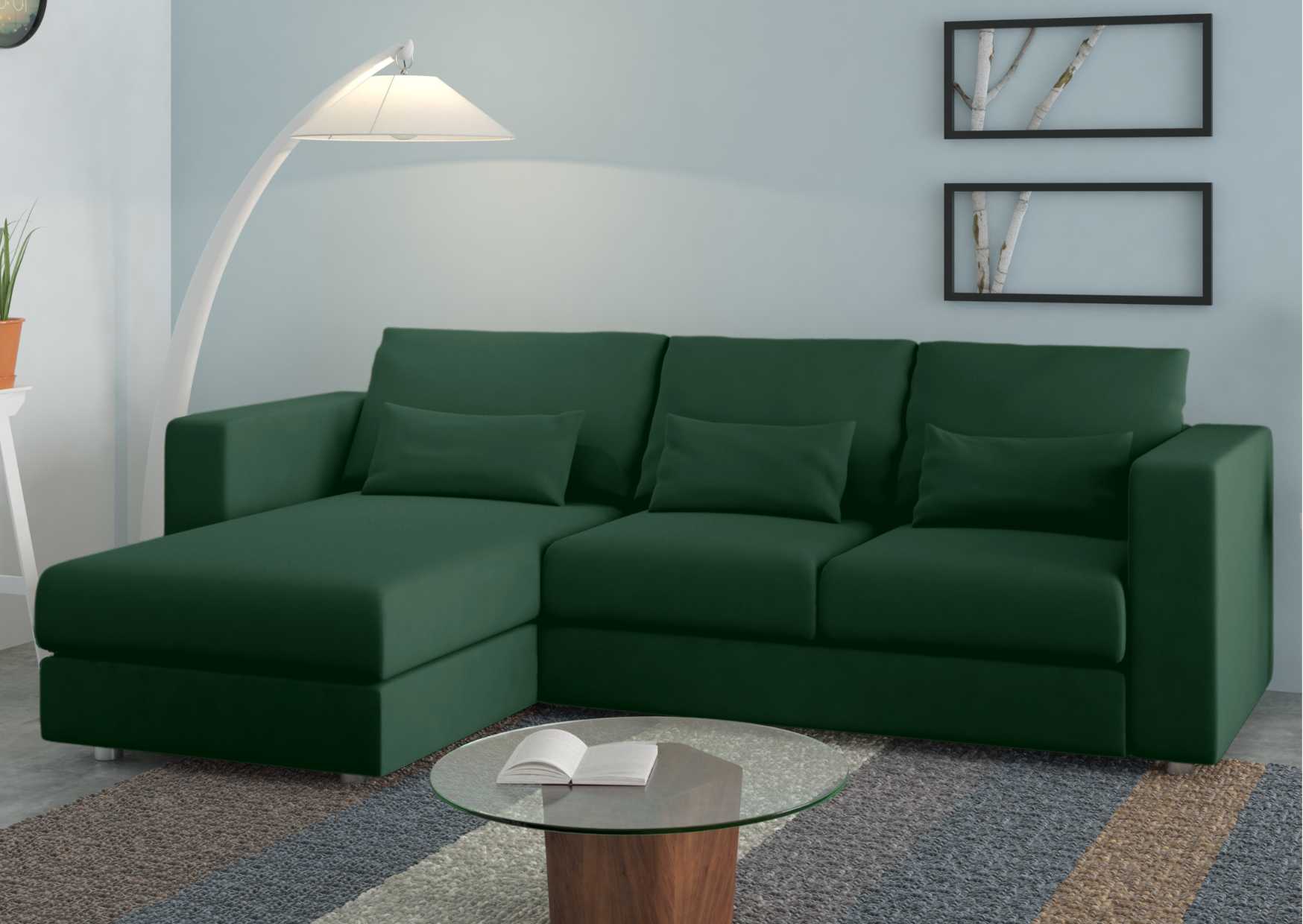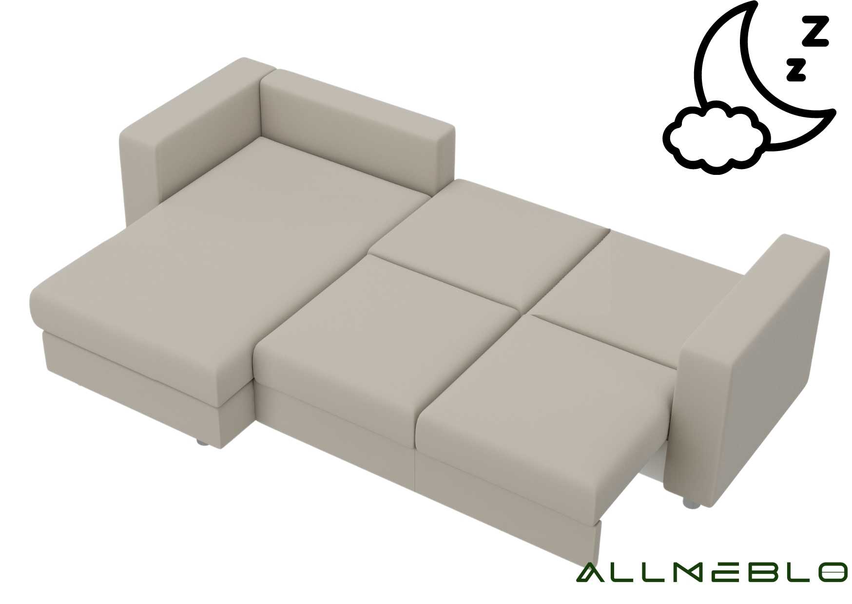 Narożnik REALITY, dzięki mocnemu stelażowi z płyty meblowej wzmacnianemu litym drewnem jest bardzo trwałym meblem. Posiada w standardzie funkcję spania. Bez dopłat materac jest stworzony z utwardzanej pianki T30, która jednak ma ograniczony potencjał wgniatania. Do spania codziennego polecamy Ci wypełnienie ze sprężyn bonell. Wygodne, trwałe i zapewniające spokojny sen. Możesz również dobrać do mebla wypełnienie z pianki wysokoelastycznej HR35.Informacje dodatkowe: